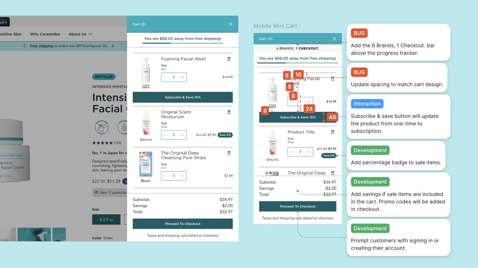 Through research and analytics, we identified that customers wanted cross-brand shopping flexibility but the separate checkouts created friction. I designed six unified design systems and created the first shared cart experience on the Shopify platform to reduce cart abandonment, increase sales, and boost average order value.