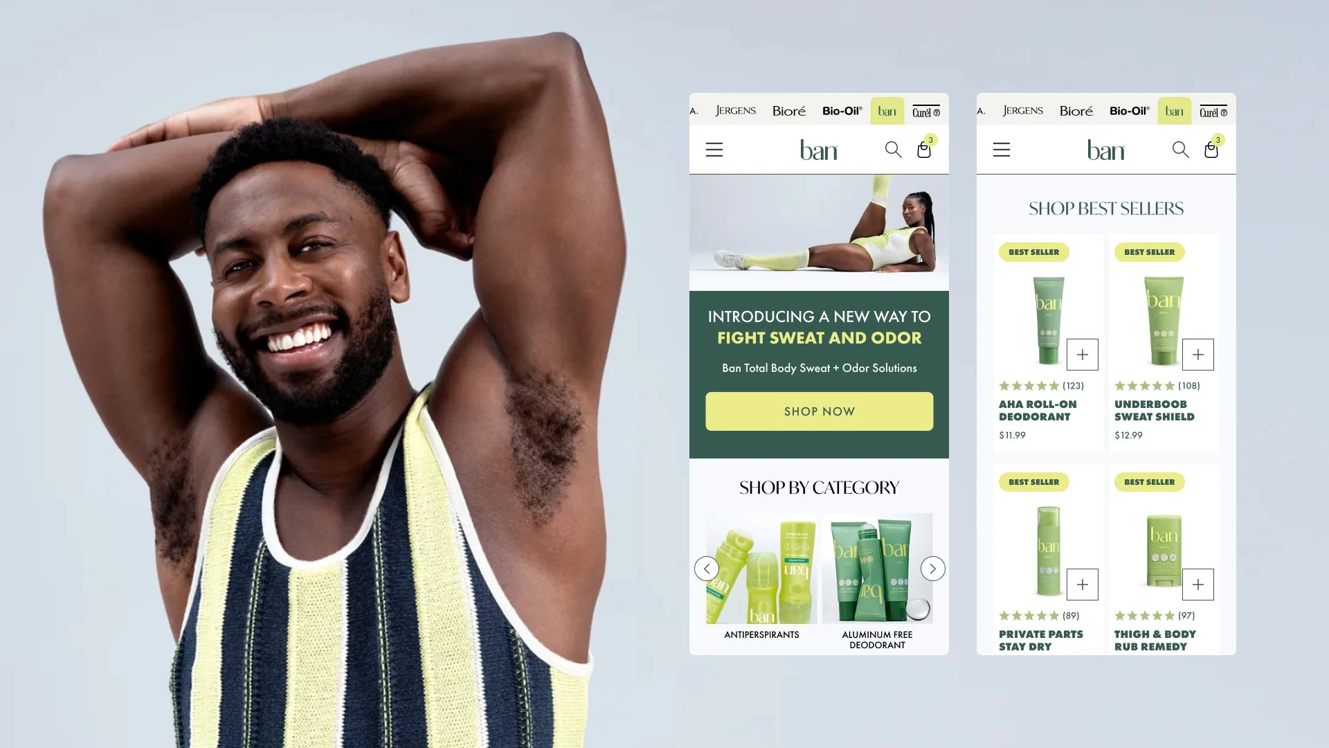 Cross-brand discovery only works if customers know other brands exist. I designed a persistent tabbed navigation that kept all six brands visible from any storefront, giving customers a clear and frictionless path to explore the full KAO portfolio without ever losing their cart or their place in the experience. After launch, session data showed customers were spending more time browsing across brands, a strong signal that the navigation was successfully driving the cross-brand discovery the platform was built around.